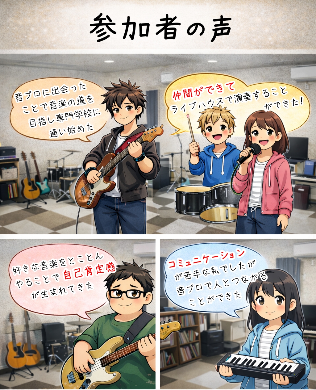 楽器ができなくても、楽譜が読めなくても、人と話すのが苦手でも全然OK!